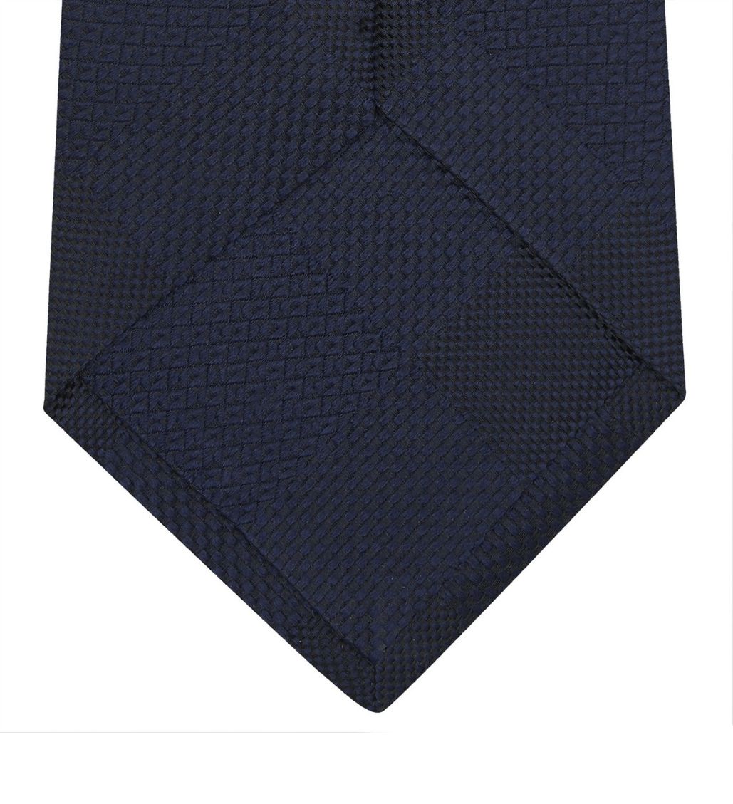 - Magadar Large Check Navy Blue Silk Tie
