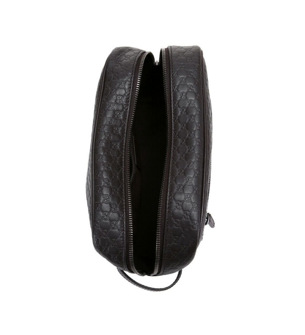 Gucci GG Guccissima embossed toiletry bag, this signature statement is a timeless icon. Crafted in leather with hardware in silver. Perfect for your essentials.