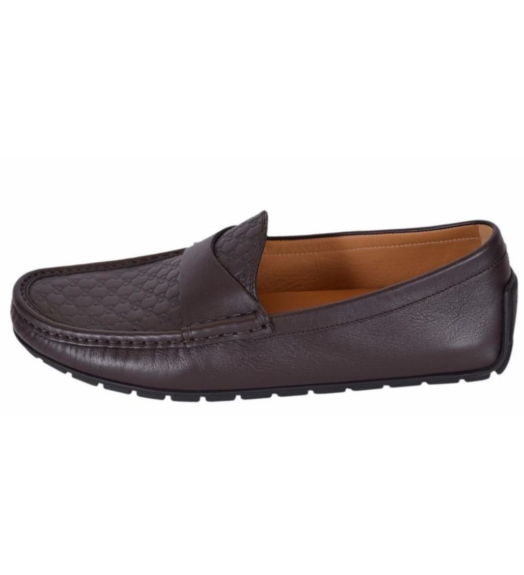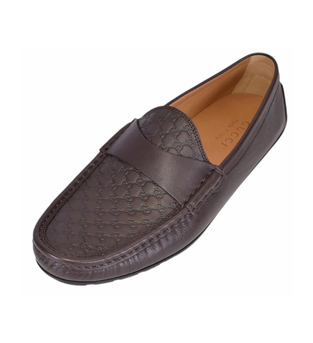 Gucci Calfskin Mens micro-soft Driver Loafers, is a timeless icon. Crafted in smooth leather with GG pattern and a rounded toe. These have a unique look for the right occasion.